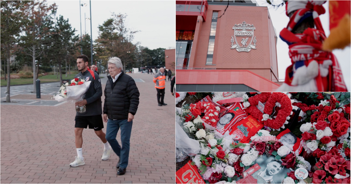Our president, Enrique Cerezo, and our captain, Koke, placed a bouquet of red-and-white flowers at the memorial space in memory of Diogo Jota at Anfield. Rest in peace. pic.twitter.com/r5VjNXzDZw