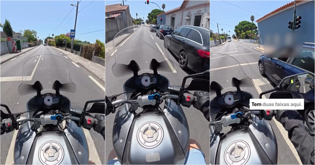 Um automobilista e um motociclista envolveram-se numa pequena discussão sobre a existência de “duas faixas” numa estrada.