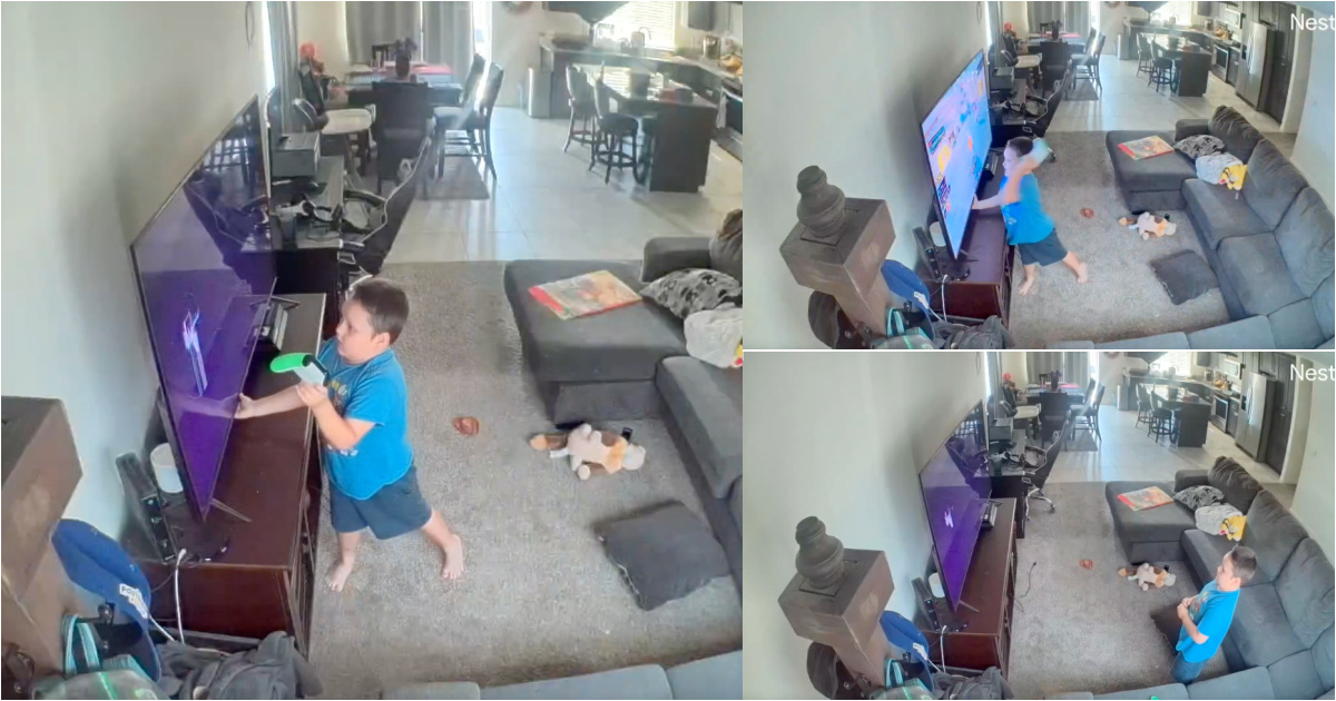 Criança bate com comando da consola na TV e fica em choque quando o esperado acontece