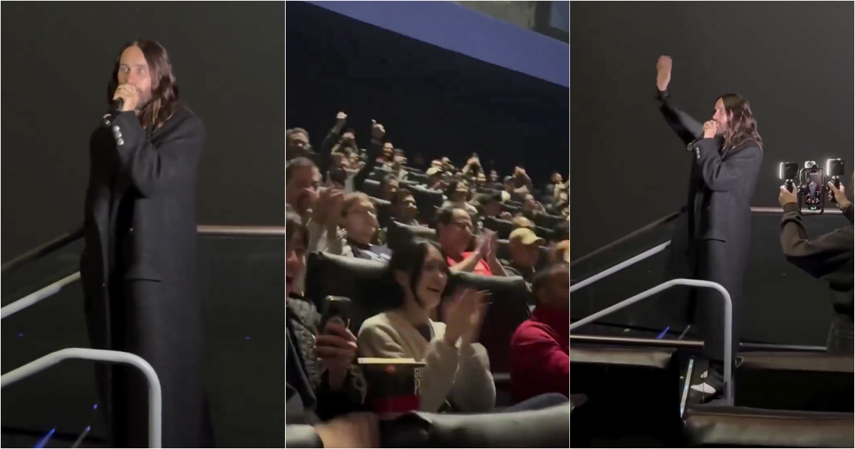 Jared Leto surpreende fãs ao aparecer na antestreia de um filme que protagoniza