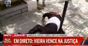Luís Filipe Vieira sofreu uma queda aparatosa esta quinta-feira à saída do Campus de Justiça, momentos depois de ter sido conhecida a decisão do processo conhecido como “Saco Azul”.