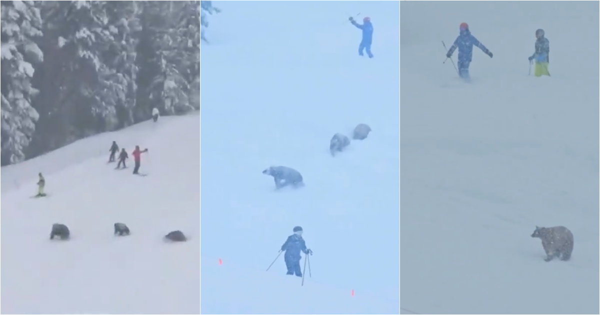 Momento inesperado: pista de esqui é tomada por ursos perante turistas incrédulos