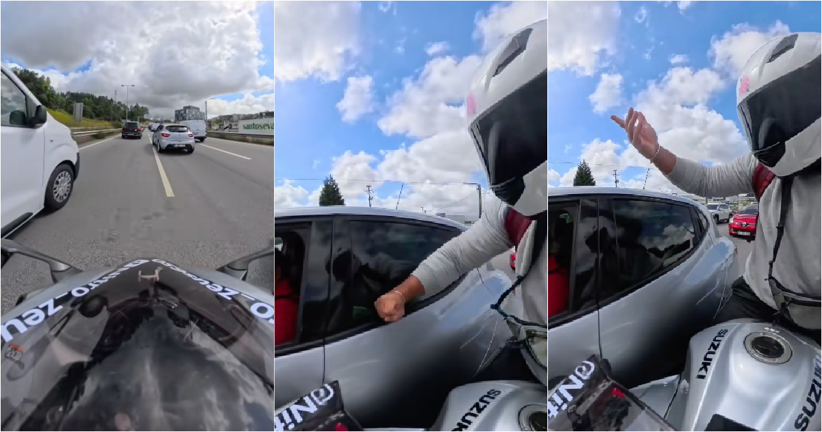Motociclista esmurra carro e insulta condutor durante discussão no trânsito em Braga