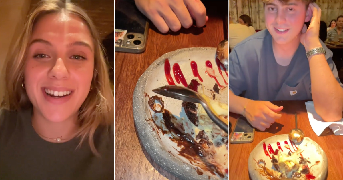“Acabo de encontrar um anel de noivado na minha sobremesa”, disse Laura no TikTok, mostrando o anel cuidadosamente escondido na sobremesa. Perante a surpresa, o namorado comentou: “O funcionário deve ter-se confundido e trouxe-nos a sobremesa da pessoa que ia pedir alguém em casamento. Tenho a certeza que essa pessoa deve estar chateada porque a namorada não encontrou o anel”.