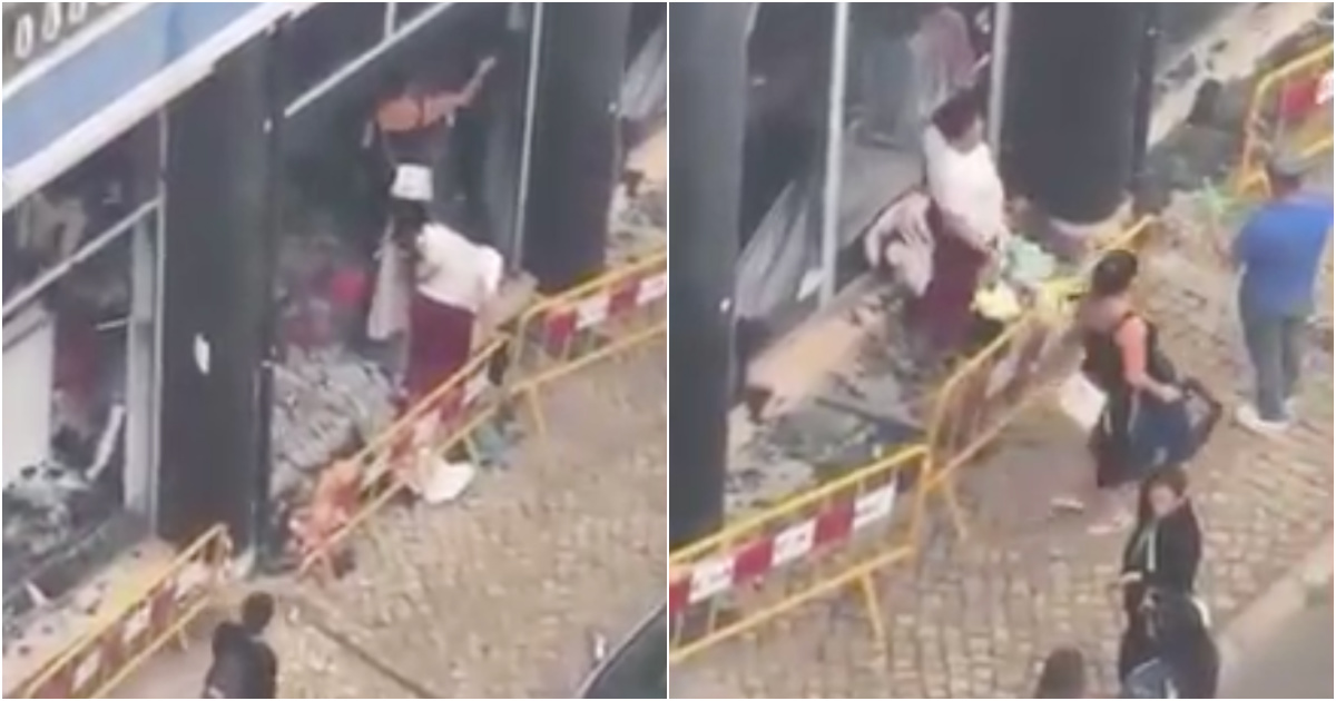 Vídeo mostra saque de roupas após loja Hiper China arder em Setúbal